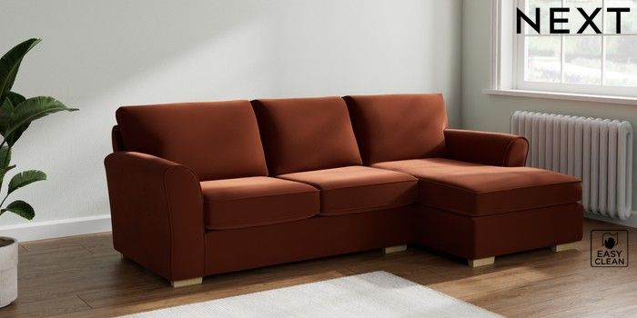 7.2.10 Michigan II Medium Sofa Chaise - Right Hand Plush Velvet Easy Clean Ginger Orange Slim Block - Light | Made Click here to use our website with more accessibility support, for example screen readers