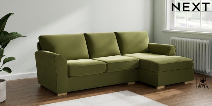 7.2.10 Michigan II Medium Sofa Chaise - Right Hand Plush Velvet Easy Clean Mid Olive Green Slim Block - Light | Made Click here to use our website with more accessibility support, for example screen readers