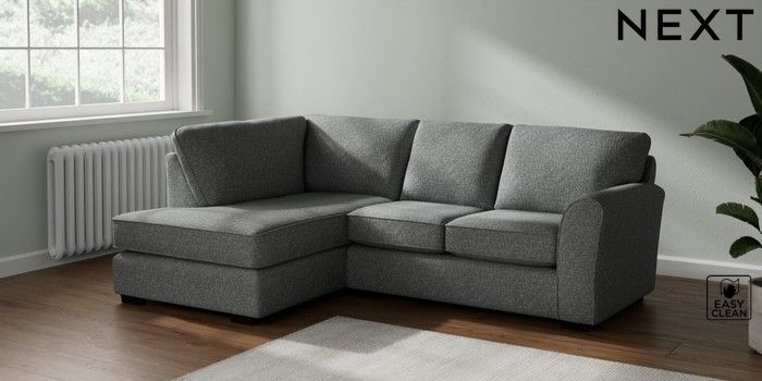 7.2.10 Michigan II Small Corner Chaise - Left Hand Chunky Boucle Easy Clean Mid Grey Slim Block - Dark | Made Click here to use our website with more accessibility support, for example screen readers