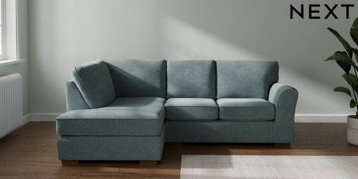7.2.10 Michigan II Small Corner Chaise - Left Hand Chunky Chenille Light Teal Green Slim Block - Mid | Made Click here to use our website with more accessibility support, for example screen readers