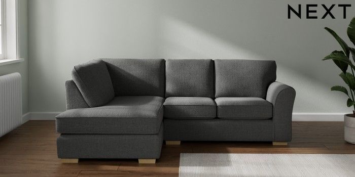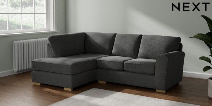 7.2.10 Michigan II Small Corner Chaise - Left Hand Chunky Texture Dark Grey Slim Block - Light | Made Click here to use our website with more accessibility support, for example screen readers