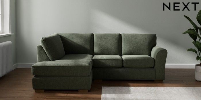 7.2.10 Michigan II Small Corner Chaise - Left Hand Chunky Texture Mid Forest Green Slim Block - Mid | Made Click here to use our website with more accessibility support, for example screen readers