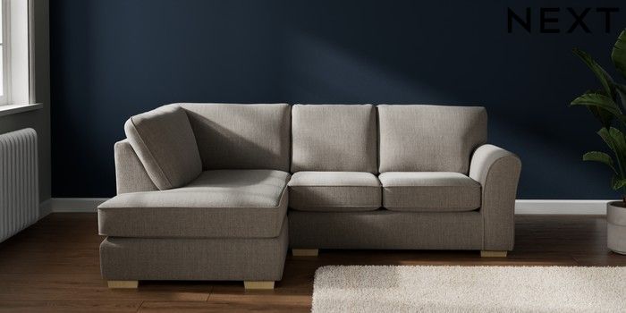 7.2.10 Michigan II Small Corner Chaise - Left Hand Chunky Weave Dove Grey Slim Block - Light | Made Click here to use our website with more accessibility support, for example screen readers