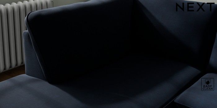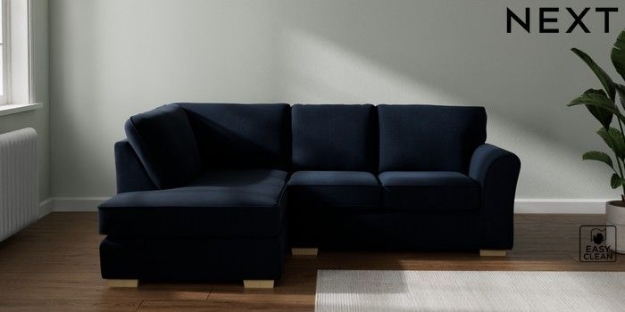 7.2.10 Michigan II Small Corner Chaise - Left Hand Fine Chenille Easy Clean Dark Navy Blue Slim Block - Light | Made Click here to use our website with more accessibility support, for example screen readers