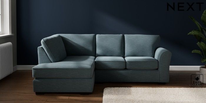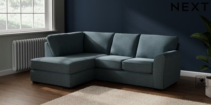 7.2.10 Michigan II Small Corner Chaise - Left Hand Fine Chenille Easy Clean Mid Blue Slim Block - Dark | Made Click here to use our website with more accessibility support, for example screen readers