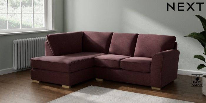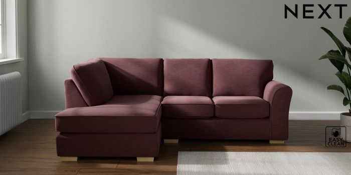 7.2.10 Michigan II Small Corner Chaise - Left Hand Fine Chenille Easy Clean Mid Mulberry Purple Slim Block - Light | Made Click here to use our website with more accessibility support, for example screen readers