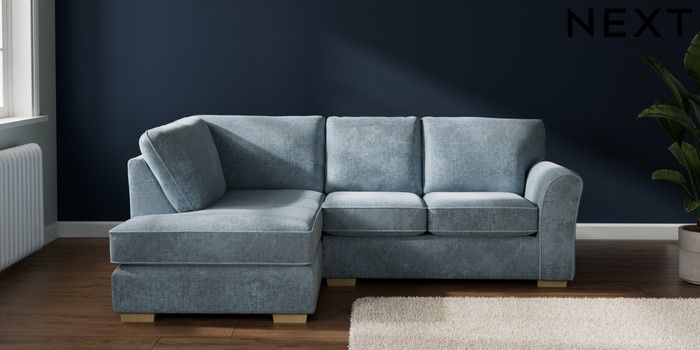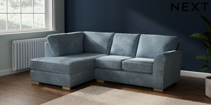 7.2.10 Michigan II Small Corner Chaise - Left Hand Plush Chenille Light Blue Slim Block - Light | Made Click here to use our website with more accessibility support, for example screen readers