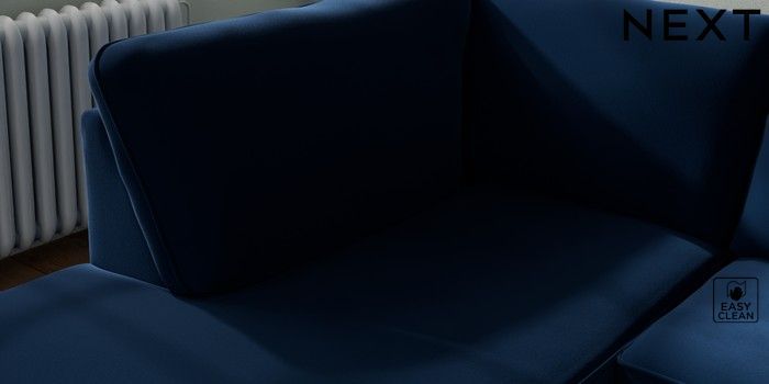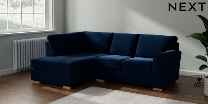 7.2.10 Michigan II Small Corner Chaise - Left Hand Plush Velvet Easy Clean Navy Blue Slim Block - Light | Made Click here to use our website with more accessibility support, for example screen readers
