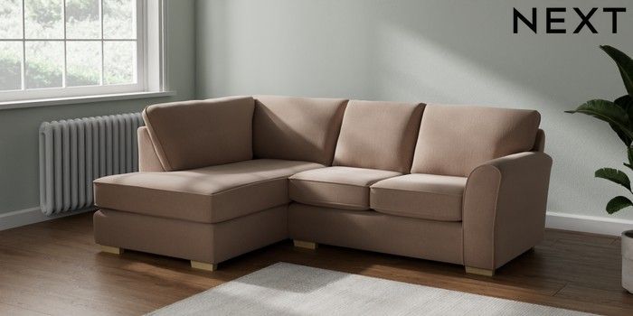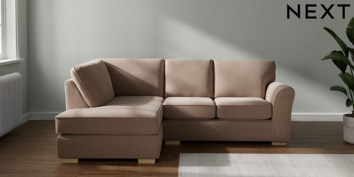 7.2.10 Michigan II Small Corner Chaise - Left Hand Relaxed Linen Look Mid Natural Slim Block - Light | Made Click here to use our website with more accessibility support, for example screen readers