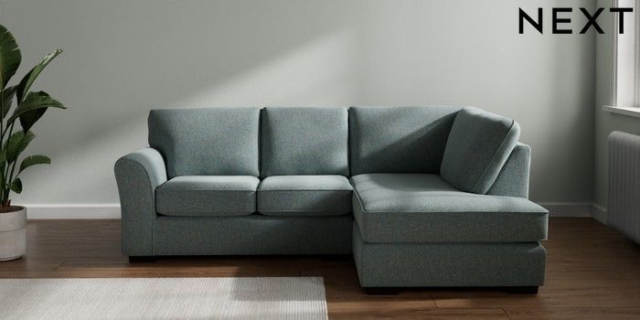 7.2.10 Michigan II Small Corner Chaise - Right Hand Chunky Marl Mid Blue Slim Block - Dark | Made Click here to use our website with more accessibility support, for example screen readers