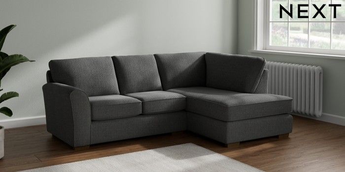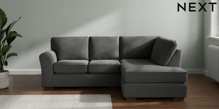 7.2.10 Michigan II Small Corner Chaise - Right Hand Chunky Texture Dark Grey Slim Block - Mid | Made Click here to use our website with more accessibility support, for example screen readers