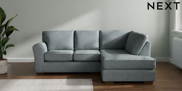 7.2.10 Michigan II Small Corner Chaise - Right Hand Chunky Weave Mid Blue Slim Block - Mid | Made Click here to use our website with more accessibility support, for example screen readers