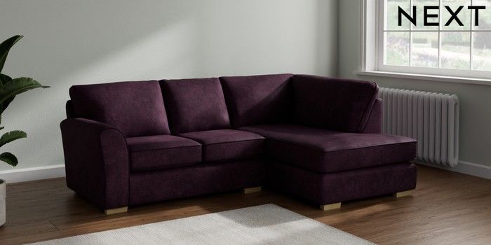 7.2.10 Michigan II Small Corner Chaise - Right Hand Plush Chenille Dark Plum Purple Slim Block - Light | Made Click here to use our website with more accessibility support, for example screen readers