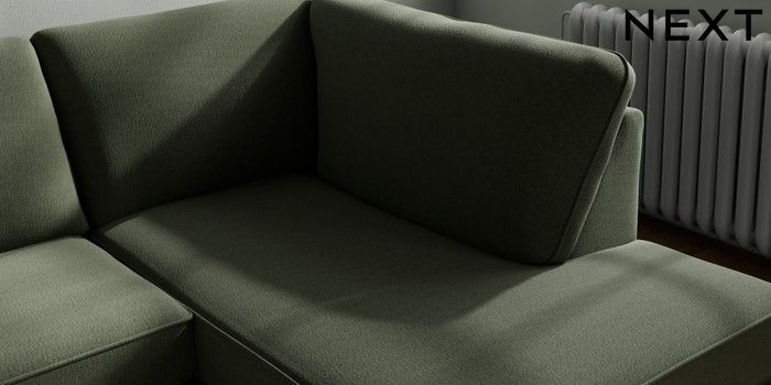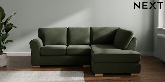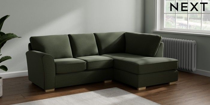 7.2.10 Michigan II Small Corner Chaise - Right Hand Relaxed Linen Look Dark Green Slim Block - Light | Made Click here to use our website with more accessibility support, for example screen readers