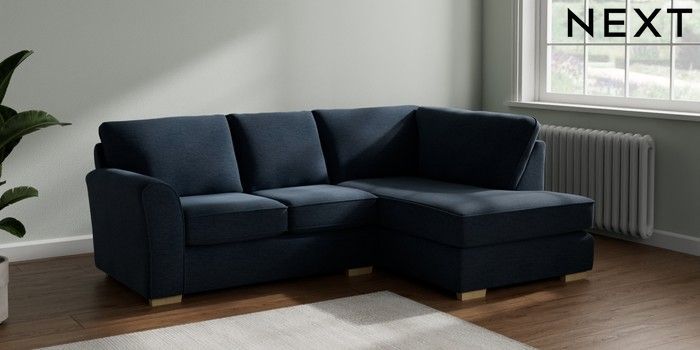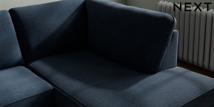 7.2.10 Michigan II Small Corner Chaise - Right Hand Ripple Chenille Dark Blue Slim Block - Light | Made Click here to use our website with more accessibility support, for example screen readers