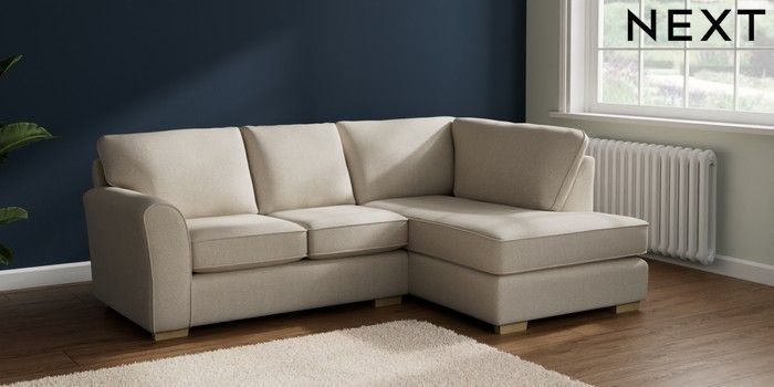 7.2.10 Michigan II Small Corner Chaise - Right Hand Tweedy Chenille Oyster Slim Block - Light | Made Click here to use our website with more accessibility support, for example screen readers