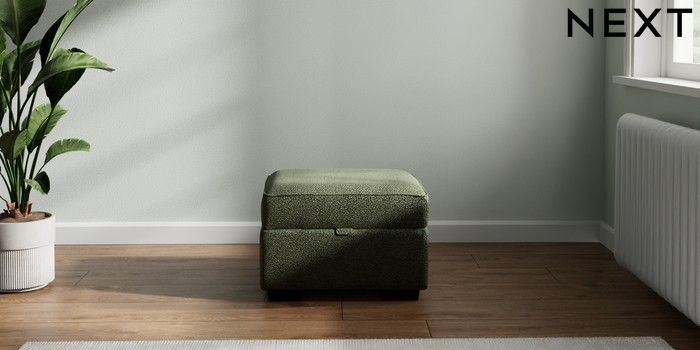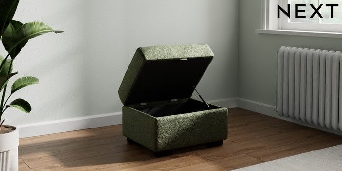7.2.10 Michigan II Storage Footstool Boucle Chenille Dark Moss Green Small Slim Block - Dark | Made Click here to use our website with more accessibility support, for example screen readers