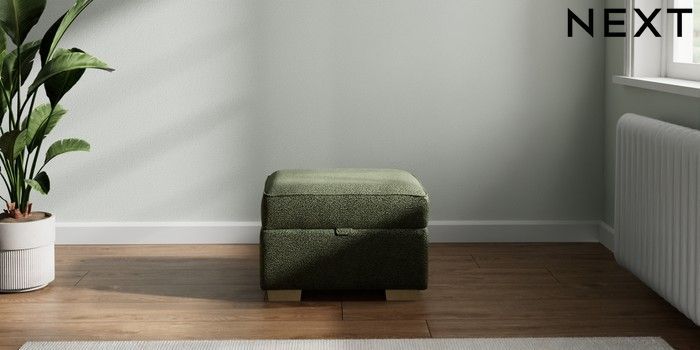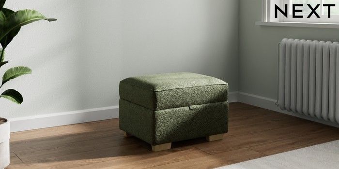 7.2.10 Michigan II Storage Footstool Boucle Chenille Dark Moss Green Small Slim Block - Light | Made Click here to use our website with more accessibility support, for example screen readers
