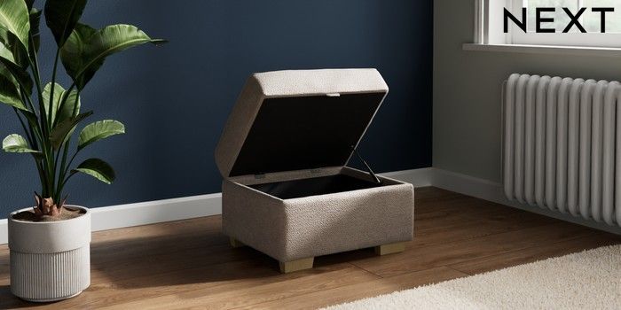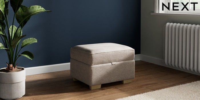 7.2.10 Michigan II Storage Footstool Boucle Chenille Light Natural Small Slim Block - Light | Made Click here to use our website with more accessibility support, for example screen readers