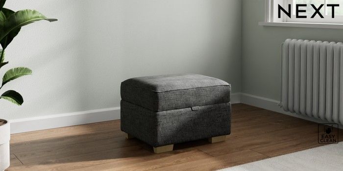 7.2.10 Michigan II Storage Footstool Boucle Weave Easy Clean Charcoal Grey Small Slim Block - Light | Made Click here to use our website with more accessibility support, for example screen readers