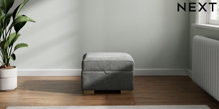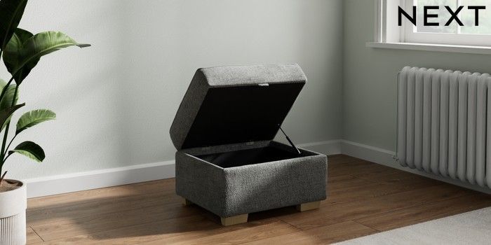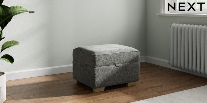 7.2.10 Michigan II Storage Footstool Chunky Chenille Dark Grey Small Slim Block - Light | Made Click here to use our website with more accessibility support, for example screen readers