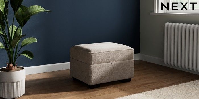 7.2.10 Michigan II Storage Footstool Chunky Chenille Light Dove Small Slim Block - Dark | Made Click here to use our website with more accessibility support, for example screen readers