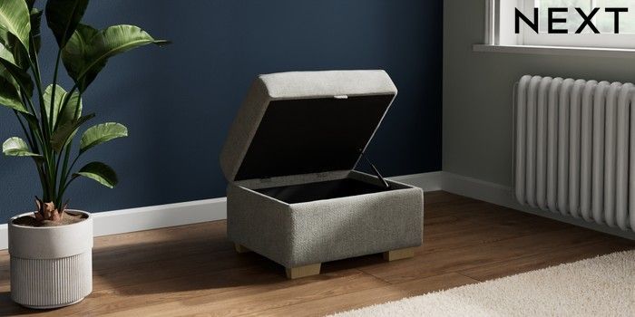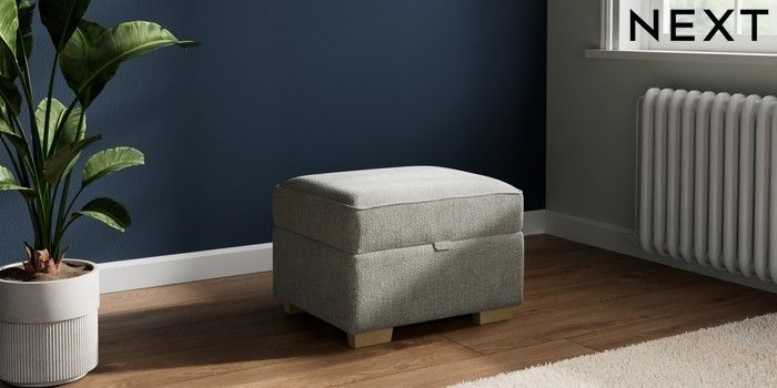 7.2.10 Michigan II Storage Footstool Chunky Chenille Light Grey Small Slim Block - Light | Made Click here to use our website with more accessibility support, for example screen readers