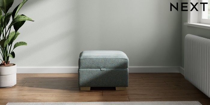 7.2.10 Michigan II Storage Footstool Chunky Marl Mid Blue Small Slim Block - Light | Made Click here to use our website with more accessibility support, for example screen readers