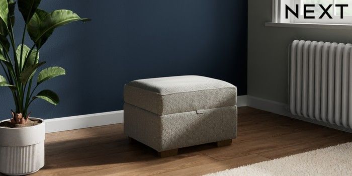 7.2.10 Michigan II Storage Footstool Chunky Texture Dove Small Slim Block - Mid | Made Click here to use our website with more accessibility support, for example screen readers