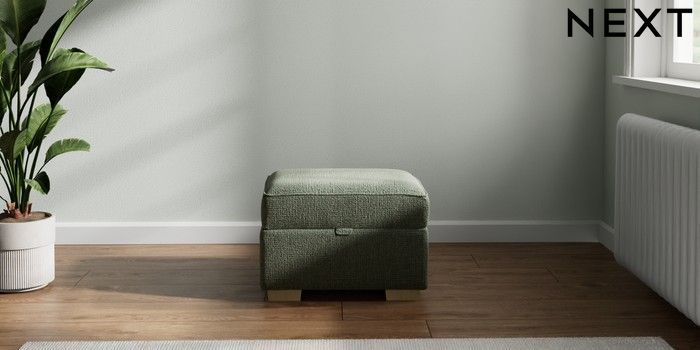 7.2.10 Michigan II Storage Footstool Chunky Texture Mid Forest Green Small Slim Block - Light | Made Click here to use our website with more accessibility support, for example screen readers