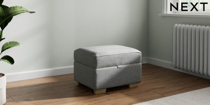 7.2.10 Michigan II Storage Footstool Chunky Weave Mid Grey Small Slim Block - Light | Made Click here to use our website with more accessibility support, for example screen readers