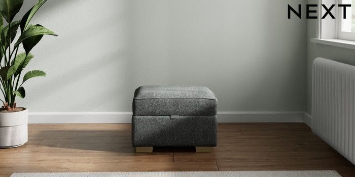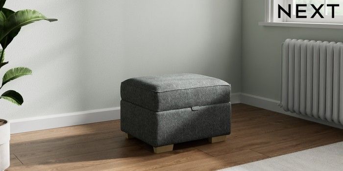 7.2.10 Michigan II Storage Footstool Cotswold Chenille Dark Grey Small Slim Block - Light | Made Click here to use our website with more accessibility support, for example screen readers