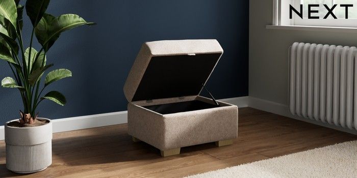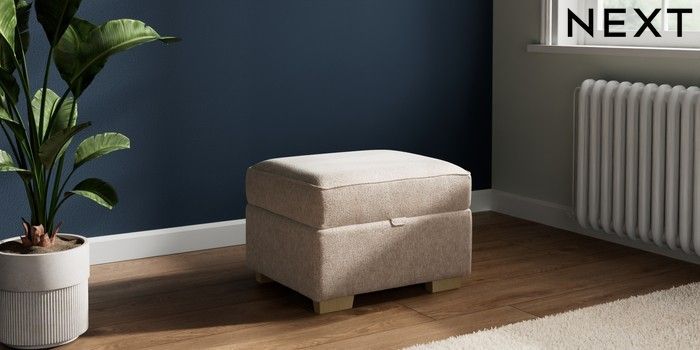 7.2.10 Michigan II Storage Footstool Cotswold Chenille Light Natural Small Slim Block - Light | Made Click here to use our website with more accessibility support, for example screen readers