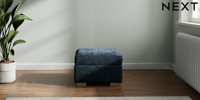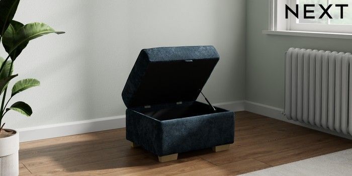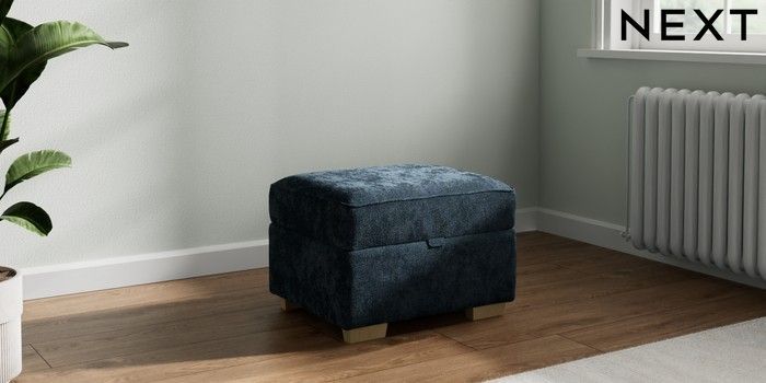 7.2.10 Michigan II Storage Footstool Distressed Velour Midnight Blue Small Slim Block - Light | Made Click here to use our website with more accessibility support, for example screen readers