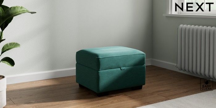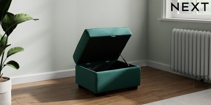 7.2.10 Michigan II Storage Footstool Fine Chenille Easy Clean Dark Juniper Green Small Slim Block - Dark | Made Click here to use our website with more accessibility support, for example screen readers