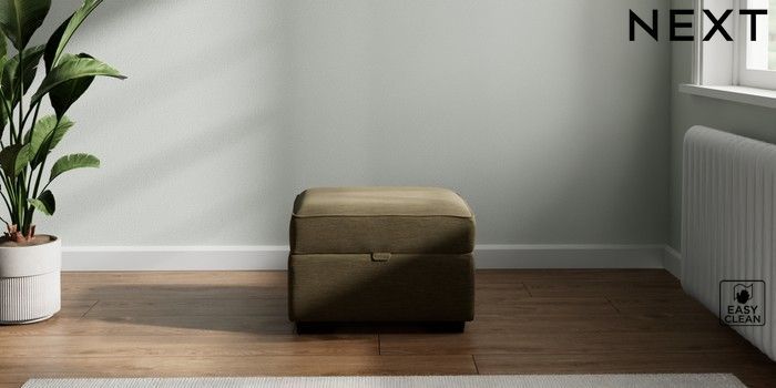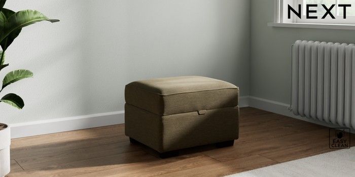 7.2.10 Michigan II Storage Footstool Fine Chenille Easy Clean Dark Moss Green Small Slim Block - Dark | Made Click here to use our website with more accessibility support, for example screen readers