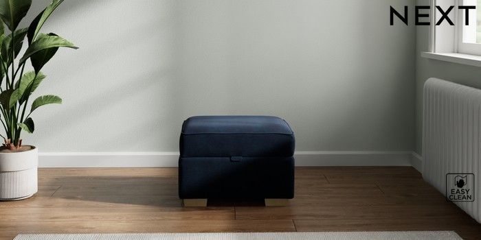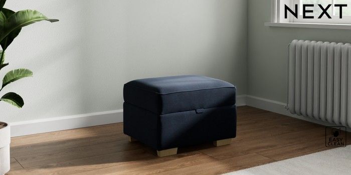 7.2.10 Michigan II Storage Footstool Fine Chenille Easy Clean Dark Navy Blue Small Slim Block - Light | Made Click here to use our website with more accessibility support, for example screen readers