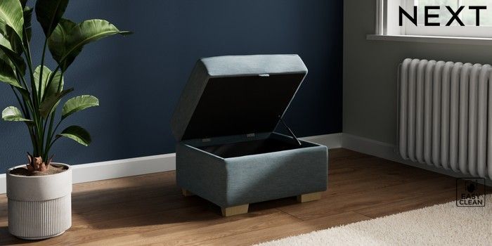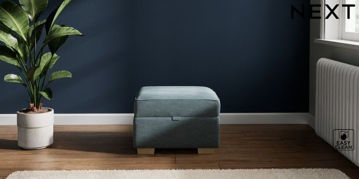 7.2.10 Michigan II Storage Footstool Fine Chenille Easy Clean Mid Blue Small Slim Block - Light | Made Click here to use our website with more accessibility support, for example screen readers