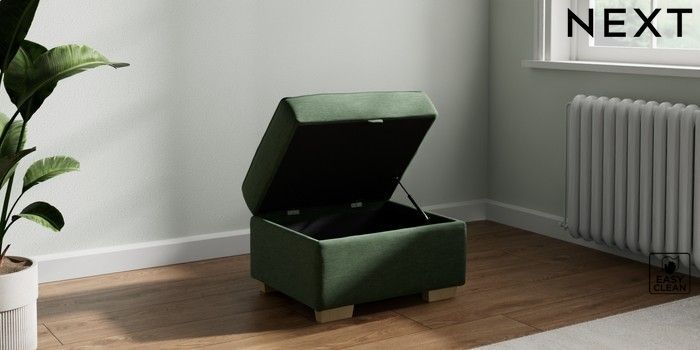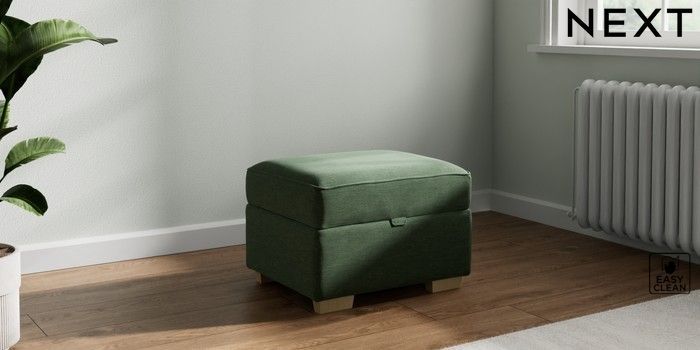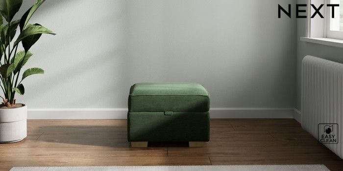 7.2.10 Michigan II Storage Footstool Fine Chenille Easy Clean Mid Khaki Green Small Slim Block - Light | Made Click here to use our website with more accessibility support, for example screen readers