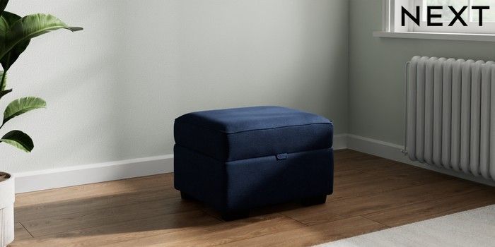 7.2.10 Michigan II Storage Footstool Luxe Chenille Navy Blue Small Slim Block - Dark | Made Click here to use our website with more accessibility support, for example screen readers