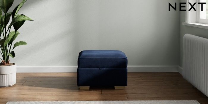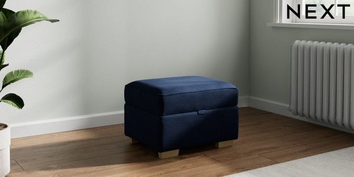 7.2.10 Michigan II Storage Footstool Luxe Chenille Navy Blue Small Slim Block - Light | Made Click here to use our website with more accessibility support, for example screen readers