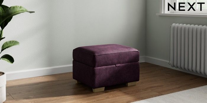 7.2.10 Michigan II Storage Footstool Plush Chenille Dark Plum Purple Small Slim Block - Light | Made Click here to use our website with more accessibility support, for example screen readers