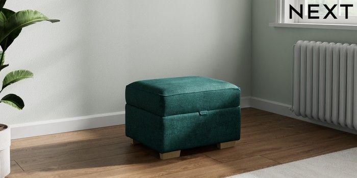 7.2.10 Michigan II Storage Footstool Plush Chenille Dark Teal Green Small Slim Block - Light | Made Click here to use our website with more accessibility support, for example screen readers