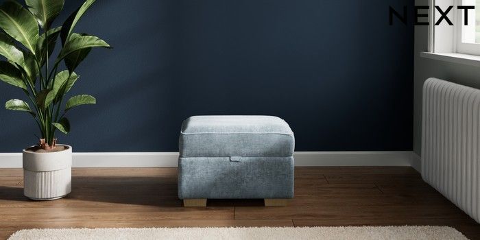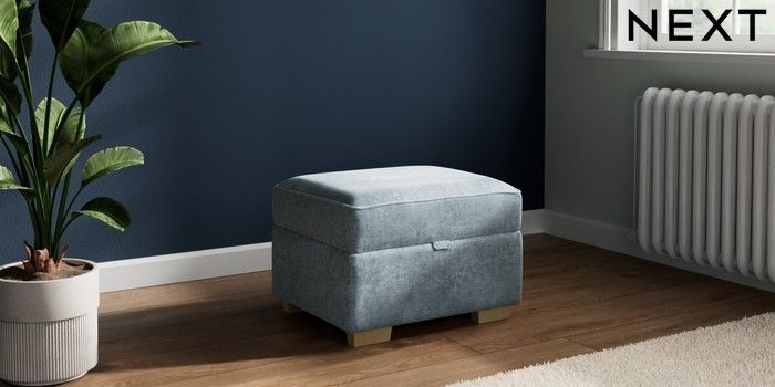 7.2.10 Michigan II Storage Footstool Plush Chenille Light Blue Small Slim Block - Light | Made Click here to use our website with more accessibility support, for example screen readers