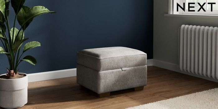 7.2.10 Michigan II Storage Footstool Plush Chenille Light Grey Small Slim Block - Mid | Made Click here to use our website with more accessibility support, for example screen readers