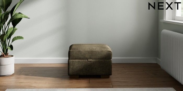 7.2.10 Michigan II Storage Footstool Plush Chenille Moss Green Small Slim Block - Mid | Made Click here to use our website with more accessibility support, for example screen readers