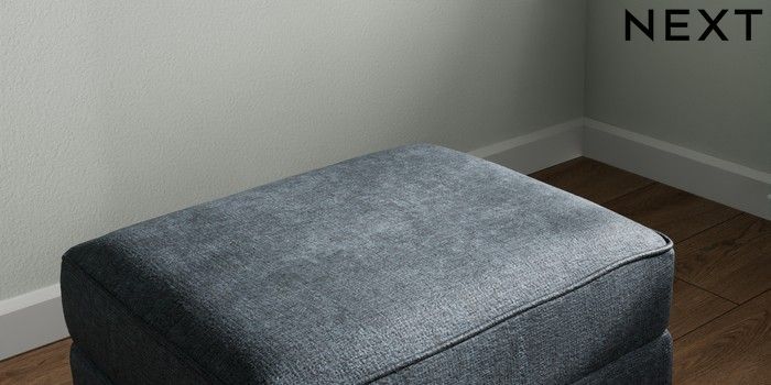 7.2.10 Michigan II Storage Footstool Plush Chenille Slate Blue Small Slim Block - Dark | Made Click here to use our website with more accessibility support, for example screen readers