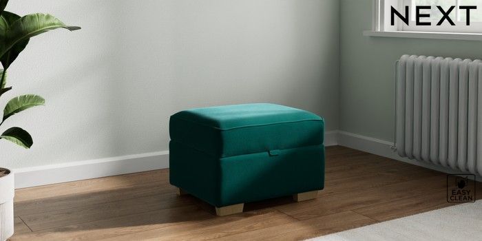 7.2.10 Michigan II Storage Footstool Plush Velvet Easy Clean Juniper Green Small Slim Block - Light | Made Click here to use our website with more accessibility support, for example screen readers