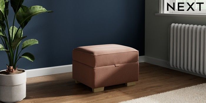 7.2.10 Michigan II Storage Footstool Relaxed Linen Look Light Rust Brown Small Slim Block - Light | Made Click here to use our website with more accessibility support, for example screen readers