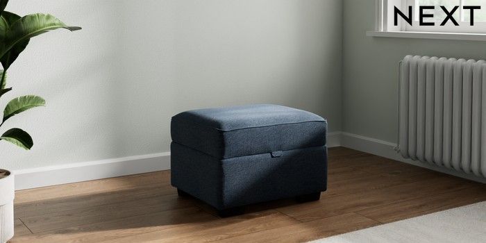 7.2.10 Michigan II Storage Footstool Ripple Chenille Dark Blue Small Slim Block - Dark | Made Click here to use our website with more accessibility support, for example screen readers